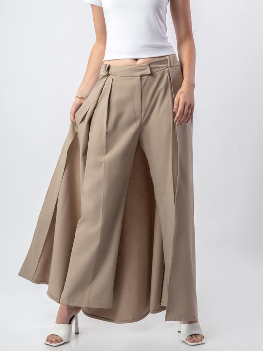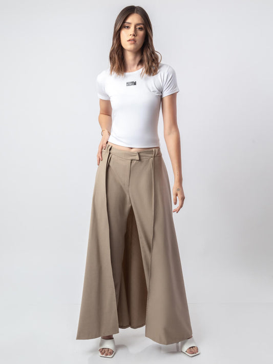The Skirt-Slack pants are an elegant and modern design. Crafted in sand simulation of wool. The regular fit is distinguished by a high waist featuring an attachable cape. The style can be worn with our matching Saddle Belt Pouch to complete a refined, versatile and rock-inspired outfit.